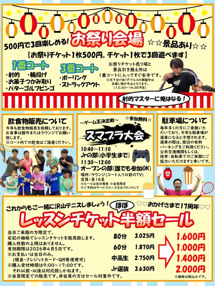 ジュニアのみんなは午前中に「テニス大合戦」もできるよ。予約してね。