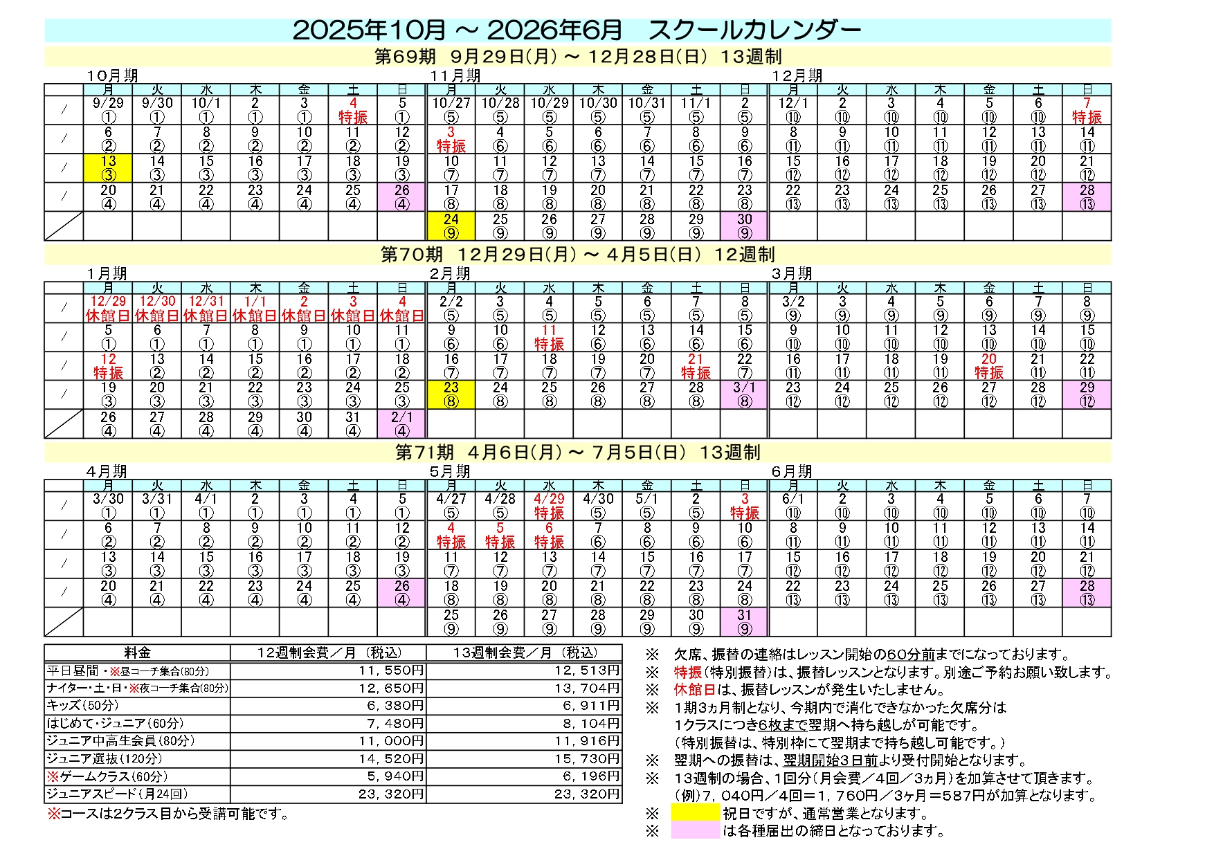 レッスン タイムテーブル