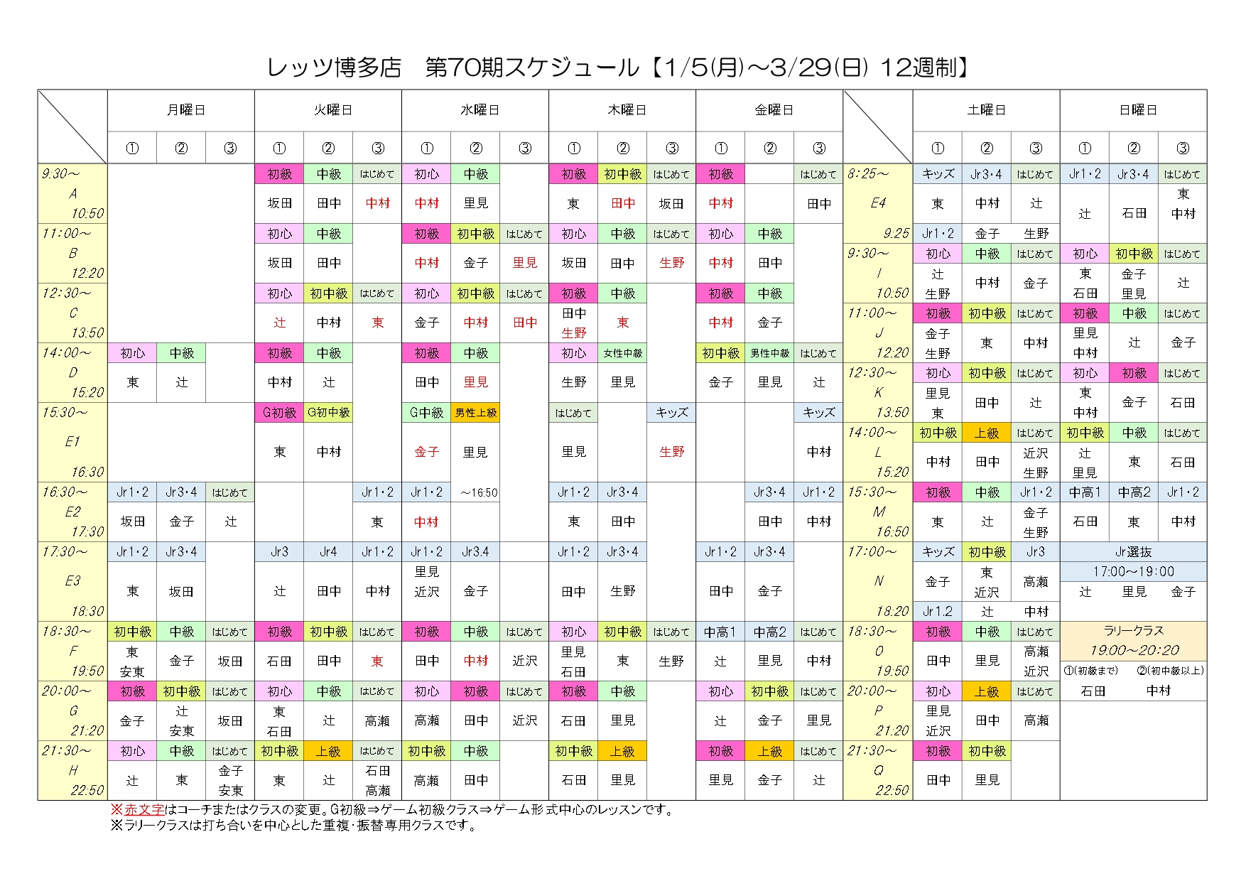 レッスン タイムテーブルtimetable